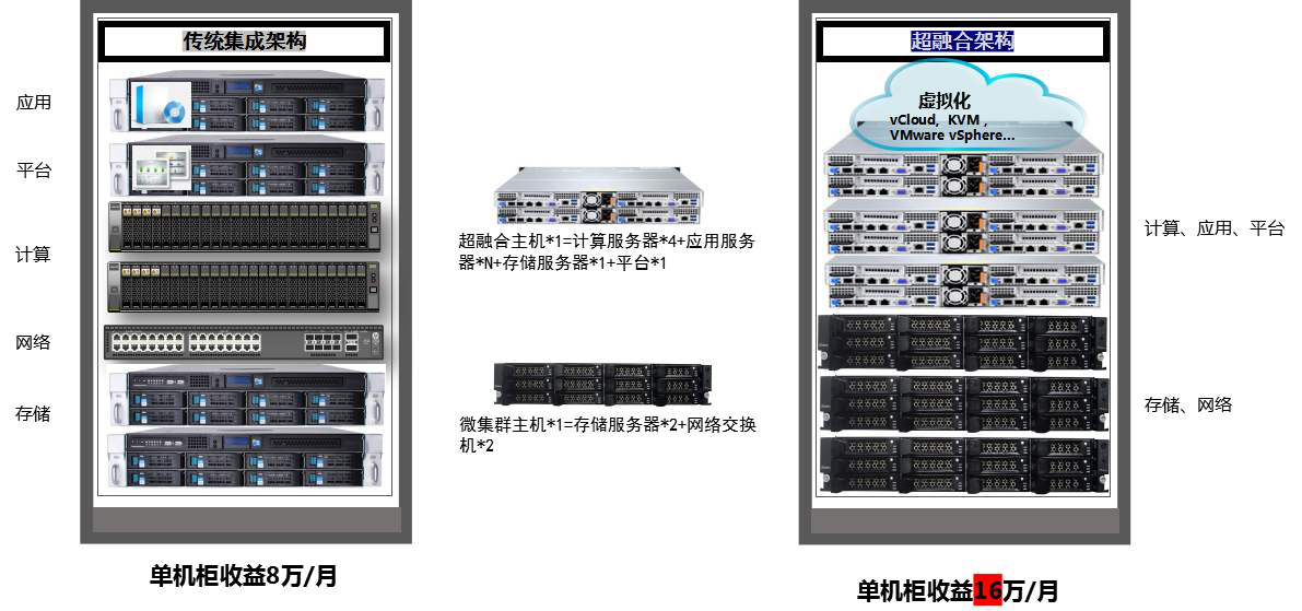 总的来说:超融合架构是基于标准通用的硬件平台,通过软件定义实现计算、存储、网络融合,实现以虚拟化为中心的软件定义数据中心的技术架构。