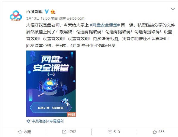 近期,百度网盘官方微博回应,私密链接分享的文件居然被挂上网了?敲黑板!勾选有提取码!设置有效期!并且还强调了“勾选有提取码!设置有效期!”三遍。