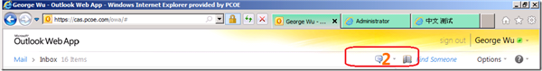 5、OWA用户与联系人进行即时通讯时,在OWA的主界面将显示当前的会话数量