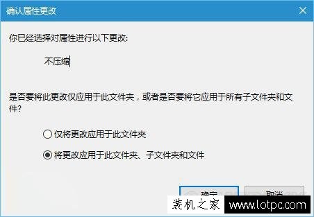 4、在弹出的消息确认框中,选择“将该设置应用到子文件夹和文件”,点击确定即可。