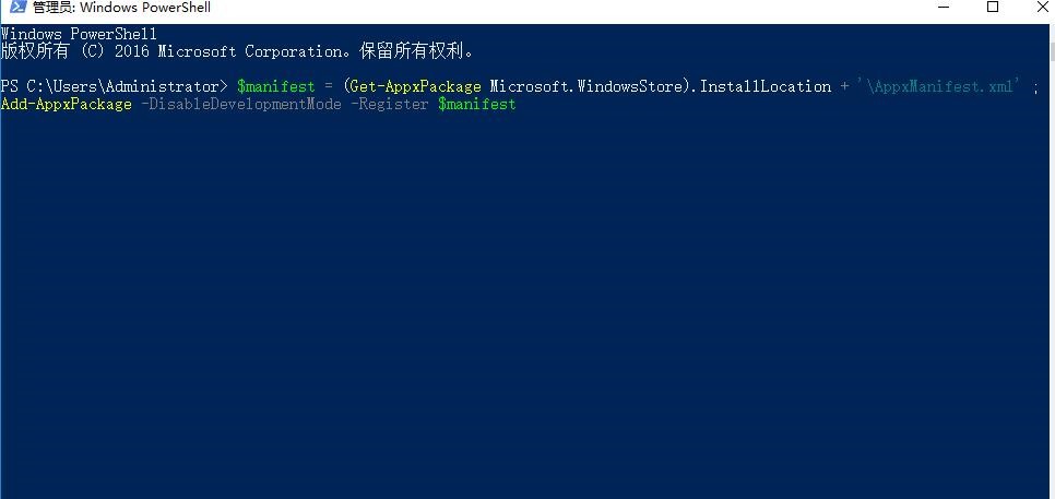 第一条:$manifest = (Get-AppxPackage Microsoft.WindowsStore).InstallLocation + '\AppxManifest.xml' ; Add-AppxPackage -DisableDevelopmentMode -Register $manifest