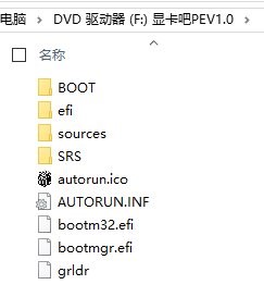 注意镜像一定要支持EFI引导。Windows7以后的系统,包括现在的Ubuntu,均对EFI提供了很好的支持,但是有些PE不支持。判断方法是镜像中有无efi文件夹。下图是我常用的PE,支持efi启动。
