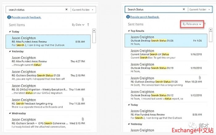 在Exchange 2016之前,根据关键词可以搜到对应邮件,但不会在预览框里高亮显示;在2019里,预览框甚至可以定位到关键词的上下文区域。