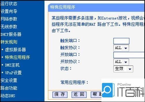 开放端口: 当触发端口被探知后,在该端口上通向内网的数据包将被允许穿过防火墙,以使相应的特殊应用程序能够在NAT路由下正常工作,同样添加软件开发商提供的端口号。