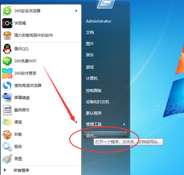 首先点击电脑左下角的【开始图标】,然后会弹出一个上拉菜单,点击【运行】,在电脑桌面上会弹出一个运行窗口,如下图所示。
