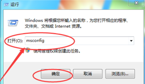 然后在输入框中输入【msconfig】,再点击下方的【确定】按钮,如下图所示。