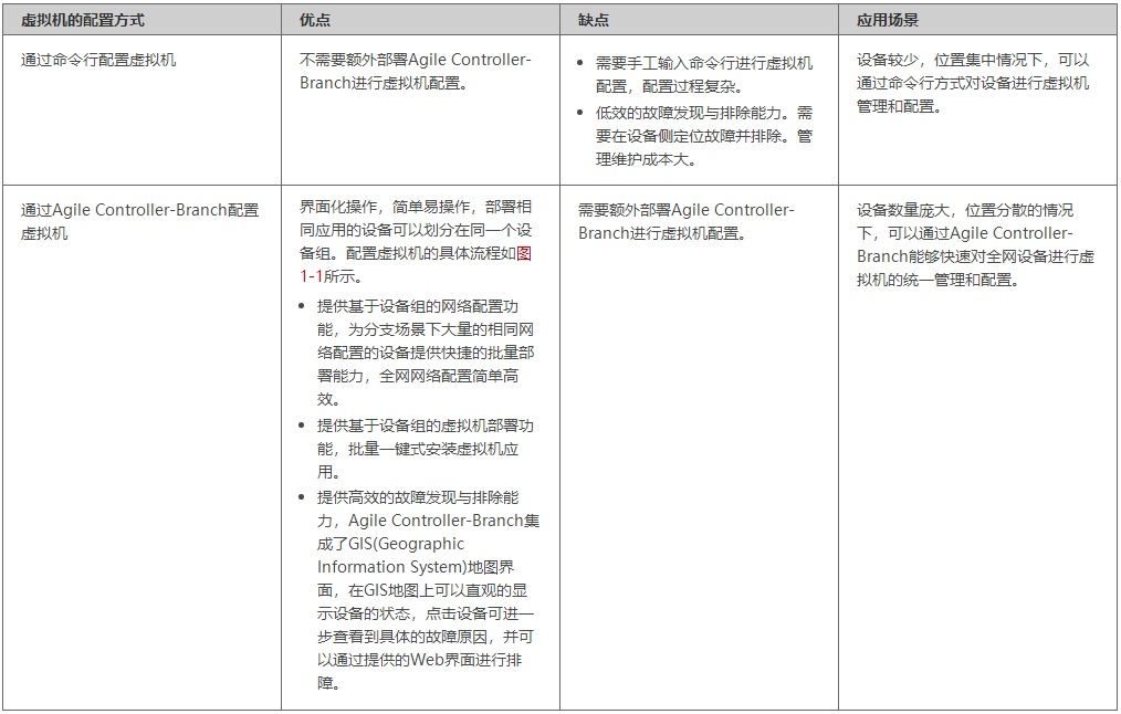 可以通过命令行和Agile Controller-Branch两种方式配置虚拟机。