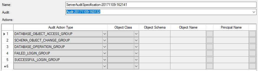 CREATE DATABASE AUDIT SPECIFICATION [DatabaseAuditSpecification-20191118-091731]