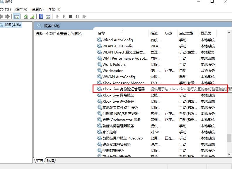 2、进入新界面后找到“xbox live身份验证管理服务”双击打开