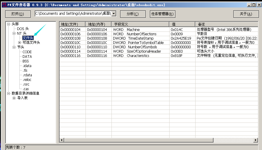 PointerToSymbolTable:COFF文件符号表在文件中的偏移。