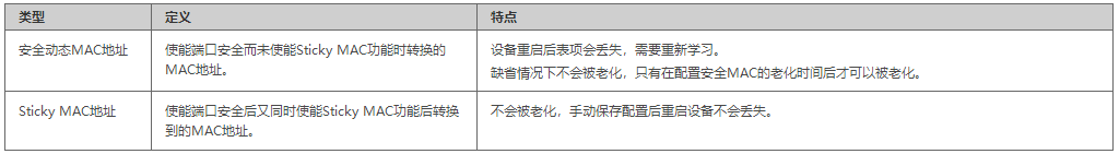 安全MAC地址分为:安全动态MAC与Sticky MAC。
