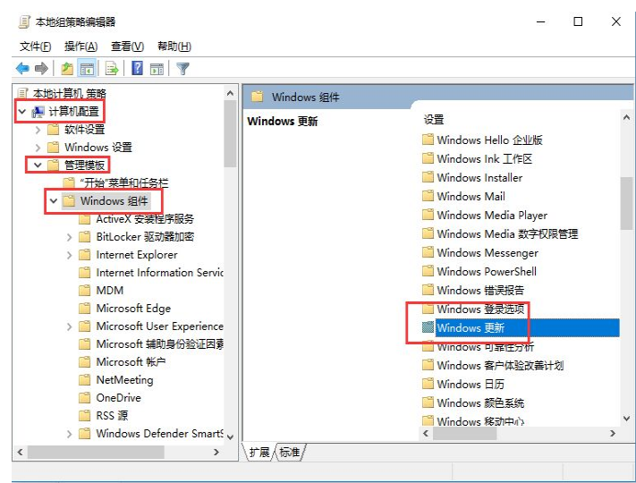 然后在计算机配置》管理模板》windows组件 》windows更新 》。(网络机房综合布线)