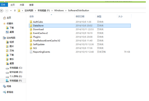 2、关闭后我们就要删除临时更新文件 进入c:WindowsSoftwareDistribution (c是系统盘),删除datastore 里所有的文件。如果想清楚已下载更新的话,就要清楚download 文件里的所有。(
