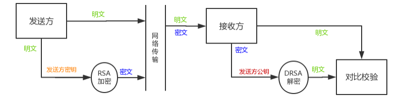 前提:首次通信时接收方接收了发送方的公钥,并保存在本地