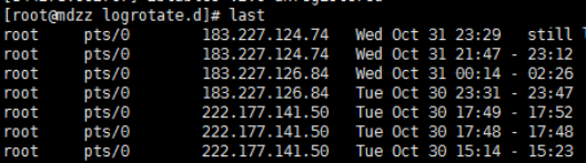 last命令,调用的文件/var/log/wtmp #查看正确的登录历史,包括重启,不能cat