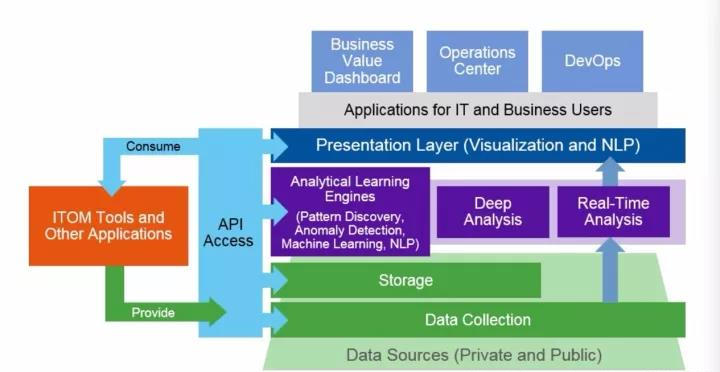 通过采集海量多维度数据,构建多元结构化底层数据仓库,以搭积木的方式适配各类运维场景,并在场景里刻画系统和人员画像,通过画像形式来辅助企业进行 IT 决策。AIOps与现有ITOM平台的关系具体如何呢?传统