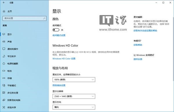 让Windows 10每天自动开启和关闭夜间模式的方法非常简单,我们只需打开Windows设置,依次点击“系统”-“显示”,接着点击“夜间模式设置”的链接。