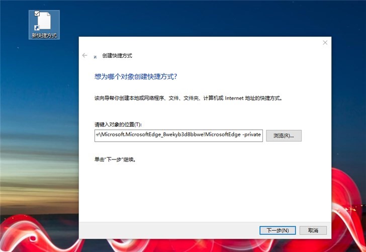 给它起一个名字,比如“Microsoft Edge浏览器InPrivete模式”,点击确定即可。到这里就大功告成了。