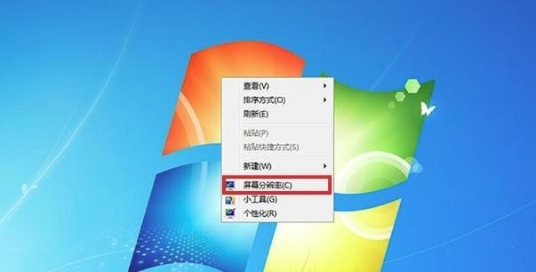 首先确保投影仪和电脑的连接正常,打开笔记本的的界面,在桌面任意位置点击右键,找到屏幕分辨率点击进去。