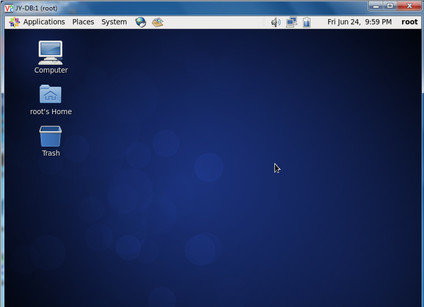 [root@JY-DB ~]# vncserver You will require a password to access your desktops. Password: Verify: xauth: creating new authority file /root/.Xauthority New 'JY-DB:1 (root)' desktop is JY-DB:1 Creating default startup script /root/.vnc/xstartup Starting applications specified in /root/.vnc/xstartup Log file is /root/.vnc/JY-DB:1.log [root@JY-DB ~]#