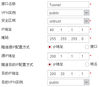 GRE隧道接口可以加入到任意一个安全区域。当GRE隧道接口和源端接口(源端地址所属的接口)不在同一安全区域中时,需要配置转发策略,使两个安全区域能够互相访问。
