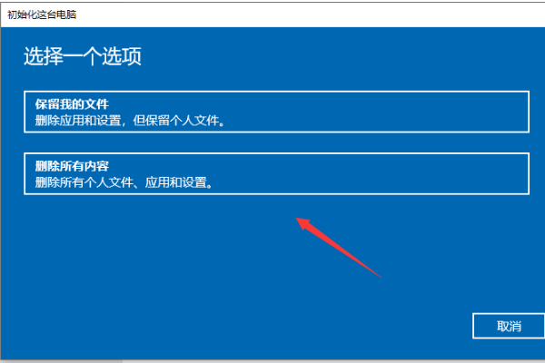 如果选择的是删除个人文件,则相当于系统盘和其它盘都会格式化,选择这项,其它盘的东西就会丢失。